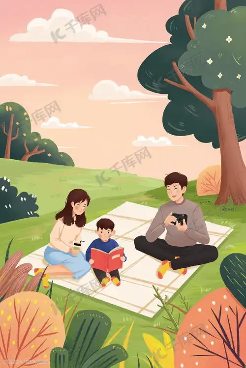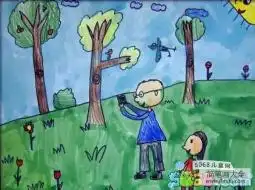 春天野外郊游儿童画